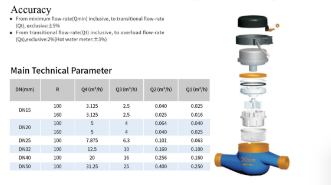 ● Water temperature≤50℃(Hot water meter≤90℃)