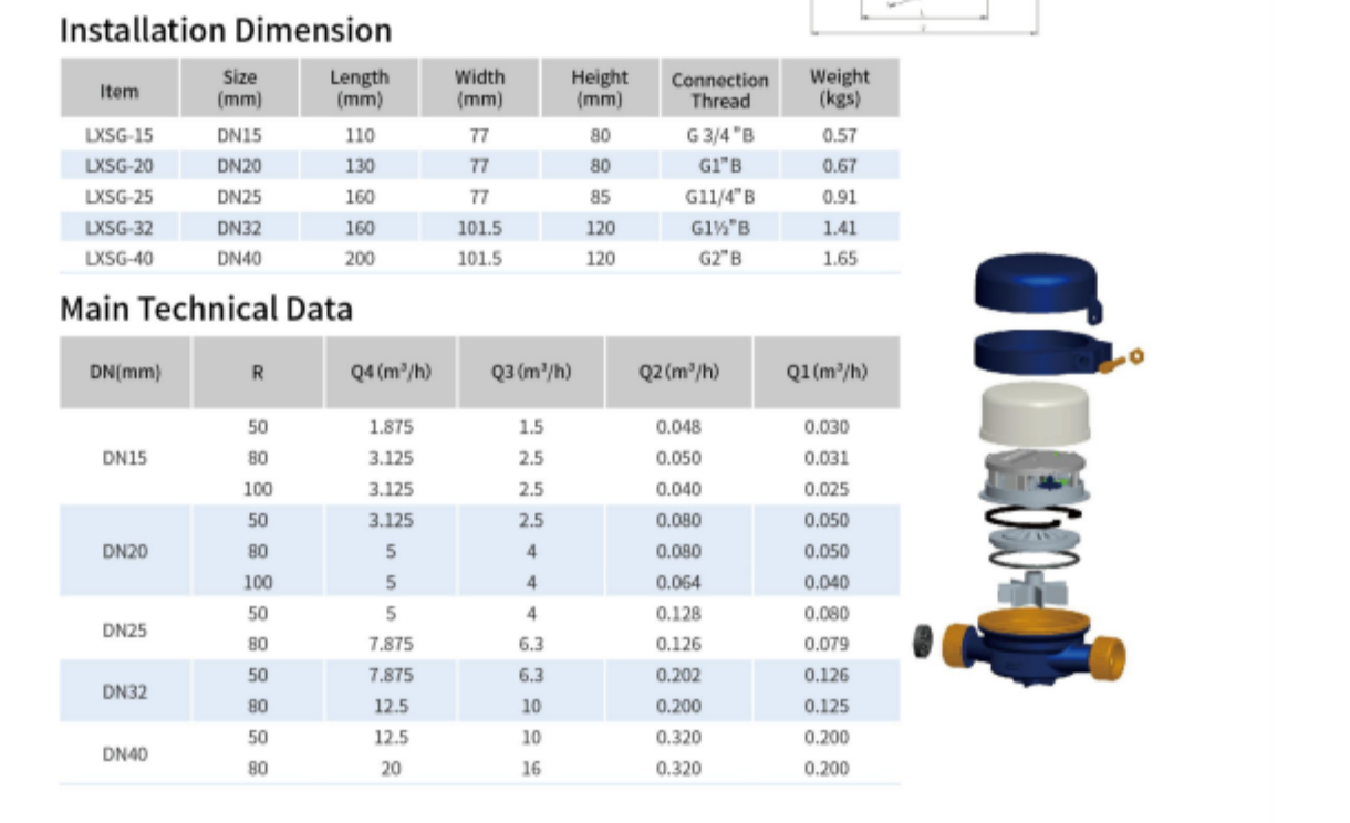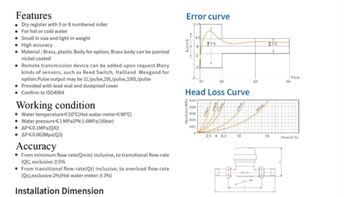 ● Water temperature≤50°℃(Hot water meter≤90℃)